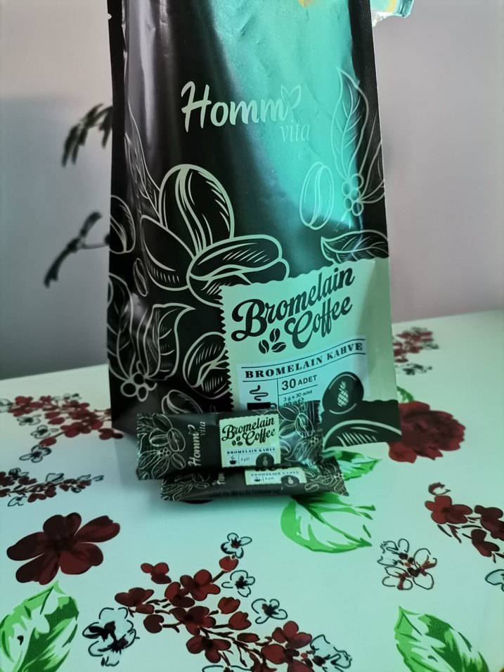 Görseldeki ürün kullanılmaktadır. Sıfır paketi mevcuttur. İsteğe bağlı yeni sipariş oluştururuz. Koyu kahverengi bromelain kahve tozu, kurutulmuş kahve ve bromelain içerir. Bir bardağa döküp sıcak su ekleyerek kolayca hazırlanır. ☕