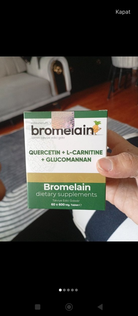 Bromelain, kuersetin, L-karnitin ve glukomannan içeren 60 tabletlik 600 mg takviye edici gıda. Sağlığı destekler. trendyol'dan aldım hiç açılmamış paket 2 tane almıştım birini açtım ve bana yaramadı kullanan işine yarayan olursa alabilir açılmamış paketi göndereceğim