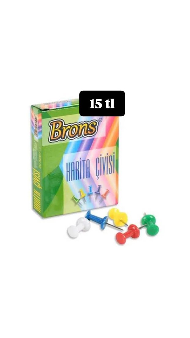 Brons markasına ait, harita çivisi seti. Eğitim amaçlı kullanıma uygundur.