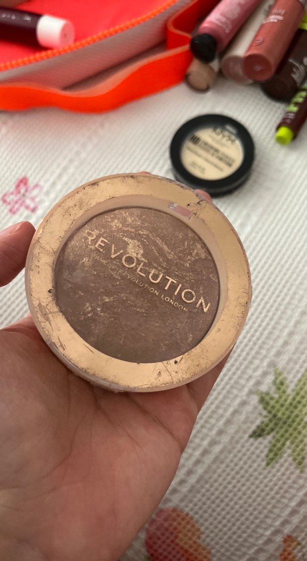 REVOLUTION bronzer. Ürün hiç kullanılmadı. 1-2 çarpmadan dolayı ön tarafı soyuldu ama tamamen sapasağlam
