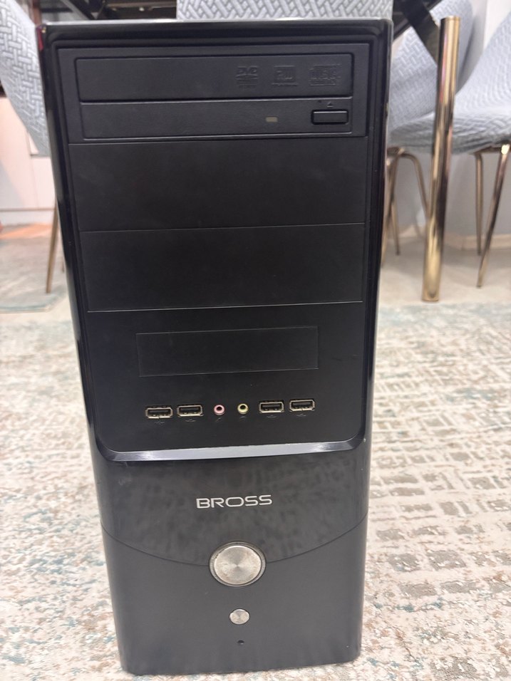 BROSS marka siyah masaüstü bilgisayarkasası, ön panelde USB ve ses girişlerine sahiptir. İçi boştır sistem dizmek isteyenler için idealdir