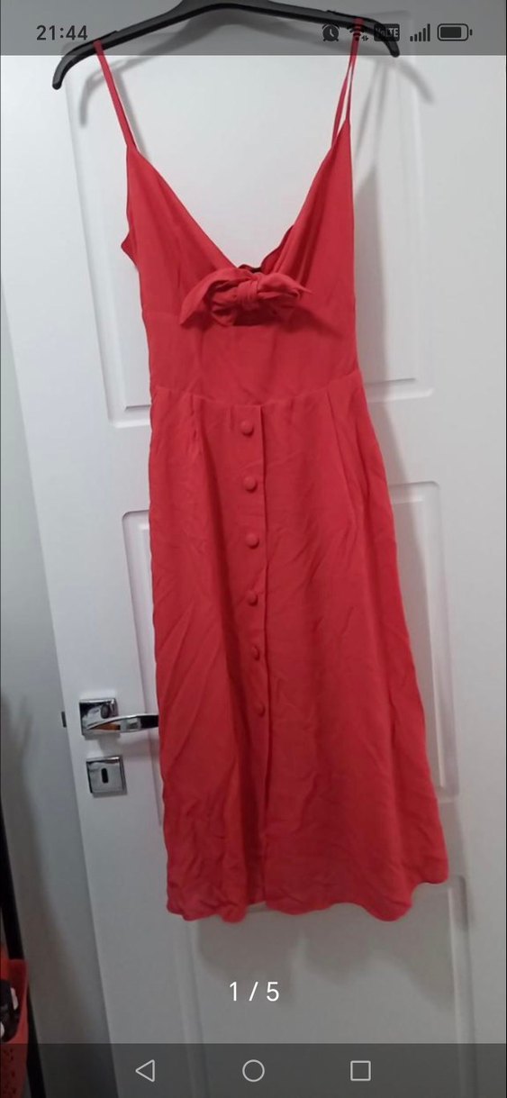 BSL Kırmızı V Yaka Düğmeli Uzun Elbise