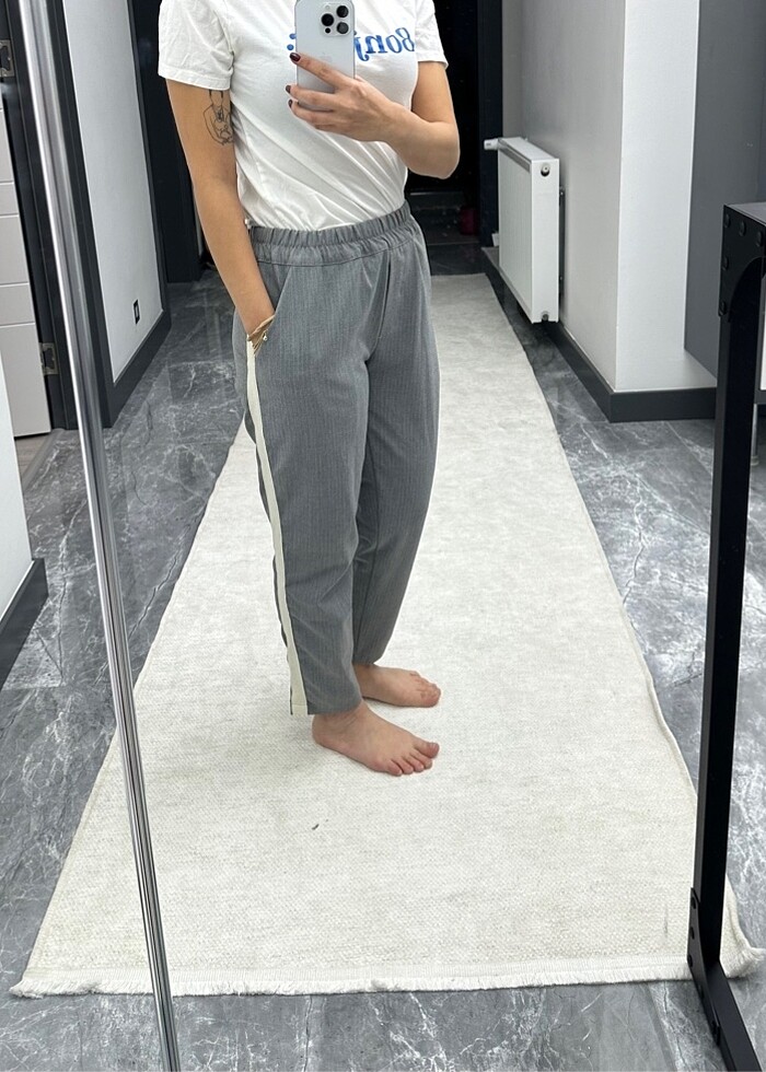 Bsl pantolon beli lastikli, içinde beyaz çizgiler yanında da beyaz bir şerit geliyor boyu 85 cm, xs s beden uyumlu sayılı giyildi