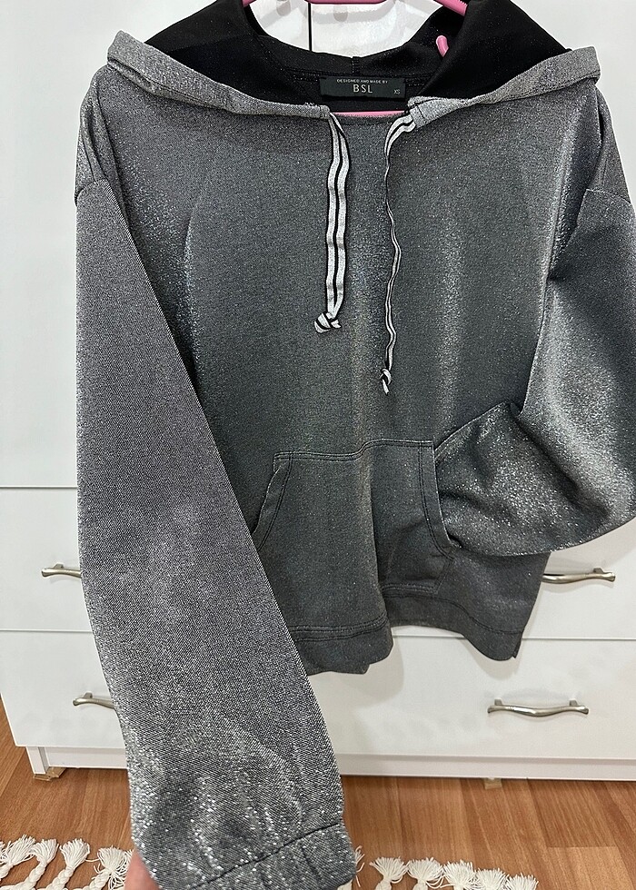 Parlak sweatshirt kapüşonlu