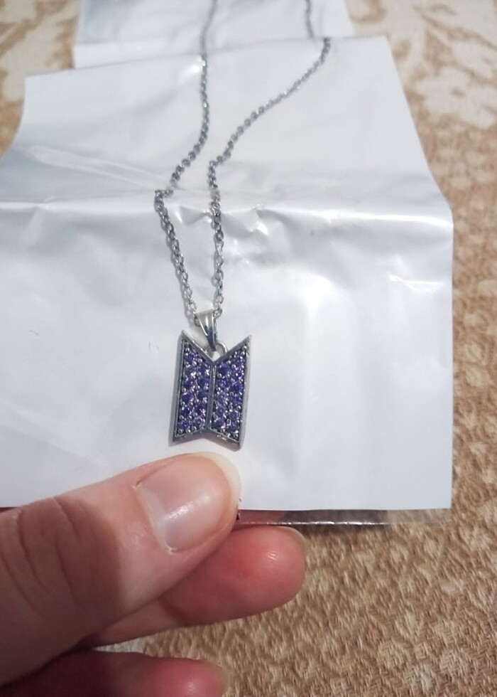 BTS logo mor taşlı kolye. Yeni üründür. Lak kaplamadır kararma veya alerji yapmaz. İşçiliği gümüş işçiliği ile birebirdir. Gümüş değildir! Adet fiyatıdır. Elimde son iki adet kaldı. Lütfen ilân açtırın. Zinciri uzundur.