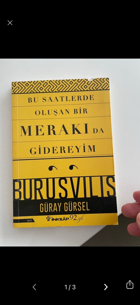 Güray Gürsel'in "Bu Saatlerde Oluşan Bir Merakı da Gidereyim" adlı kitabı, sarı siyah kapak ve belirgin yazı tipi ile dikkat çekiyor.
