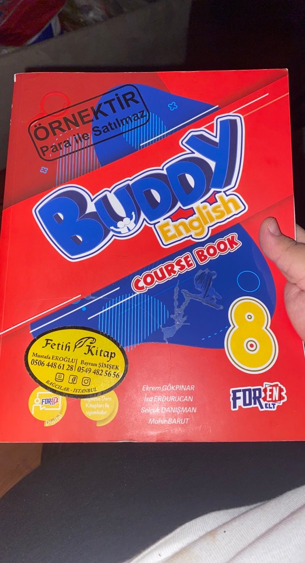 Buddy English 8. sınıf kurs kitabı, sınav hazırlığı için örneklerle dolu içerik sunar. Yeni ve hiç kullanılmadı