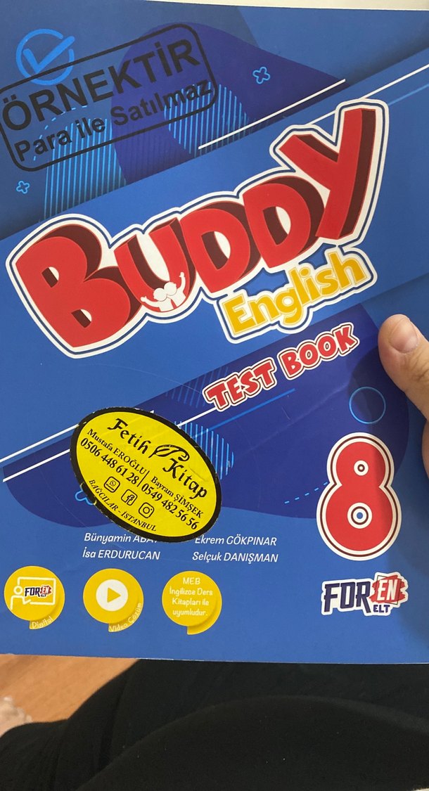 Buddy English test kitabı, 8. sınıf öğrencileri için hazırlanmış, MEB İngilizce dersi müfredatına uygun paralel test soruları içerir. Yeni ve hiç kullanılmadı