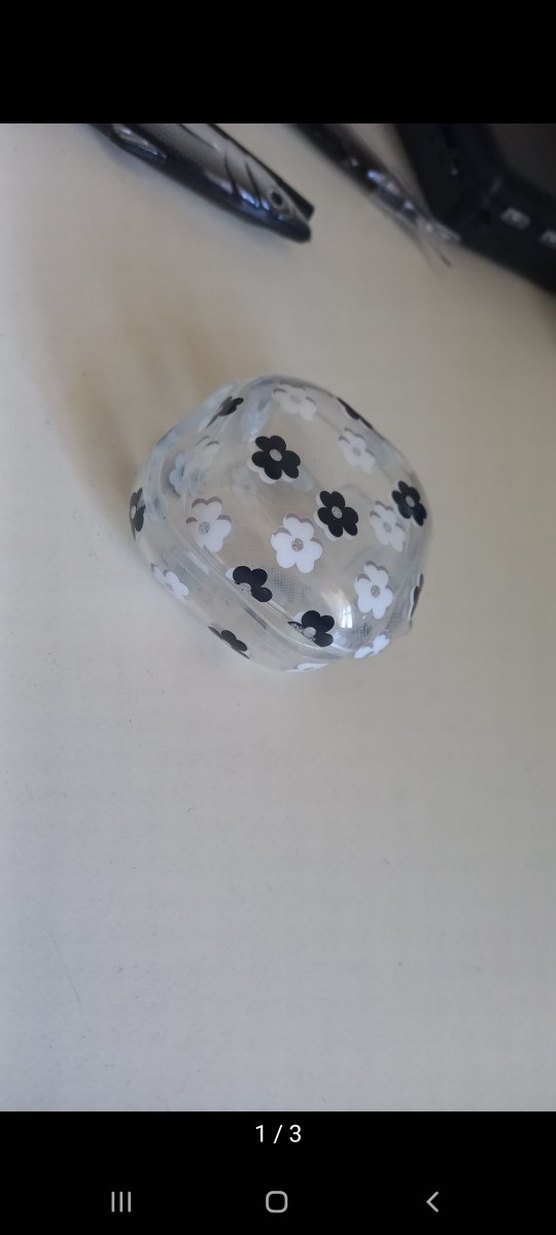 Şeffaf plastik üzerine siyah ve beyaz çiçek desenleriyle minimalist