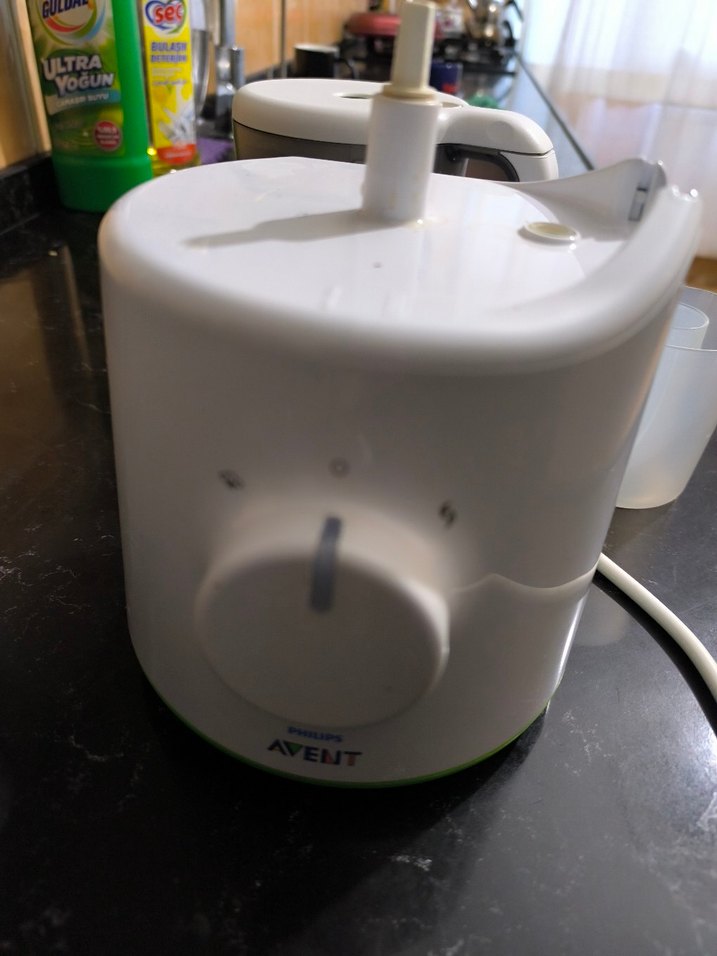 Beyaz AVENt hem buhar makinası.meyve ve zebzeyi buharla püre yapıyor hemde blender olarak kullanılabiliyor artık çocuğum büyüdü diye kullanmıyorum tertemizdir hiçbir sorunu yok mağaza fiyatı 5 bin tldir 3 bine bırakıyorum