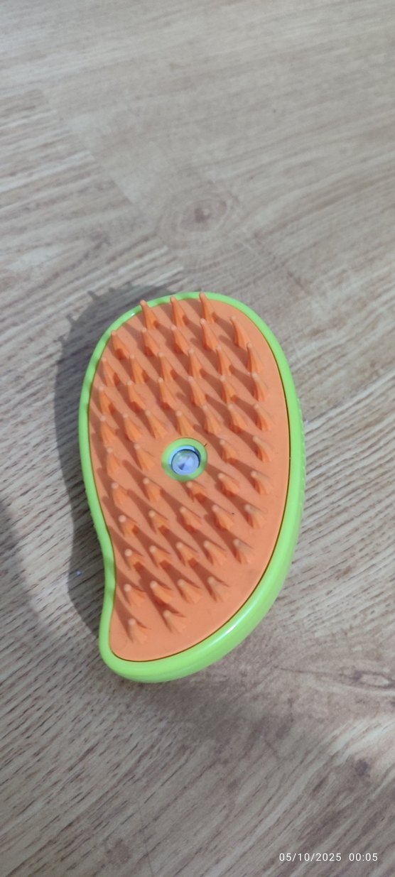 Turuncu yumuşak kıllara ve yeşil tabana sahip saç fırçası,silikon uçlu kedi ve köpek için uygun şarjlı buhar ile kolay tarama sağlıyor
