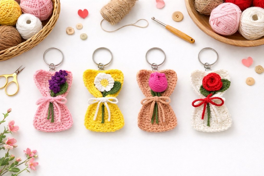 Sevgililer Günü için hem anlamlı hem kalıcı bir hediye arıyorsan El emeğiyle örülmüş bu çiçekli Buket Anahtarlıklar tam sana göre Sevdiğine özel El yapımı – her biri özenle hazırlandı Tatlı, zarif ve kullanışlı Sevgililer Günü hediyesi olarak çok tercih ediliyor Stoklar sınırlı ✨ Sipariş ve detaylar için DM’den yazabilirsin
