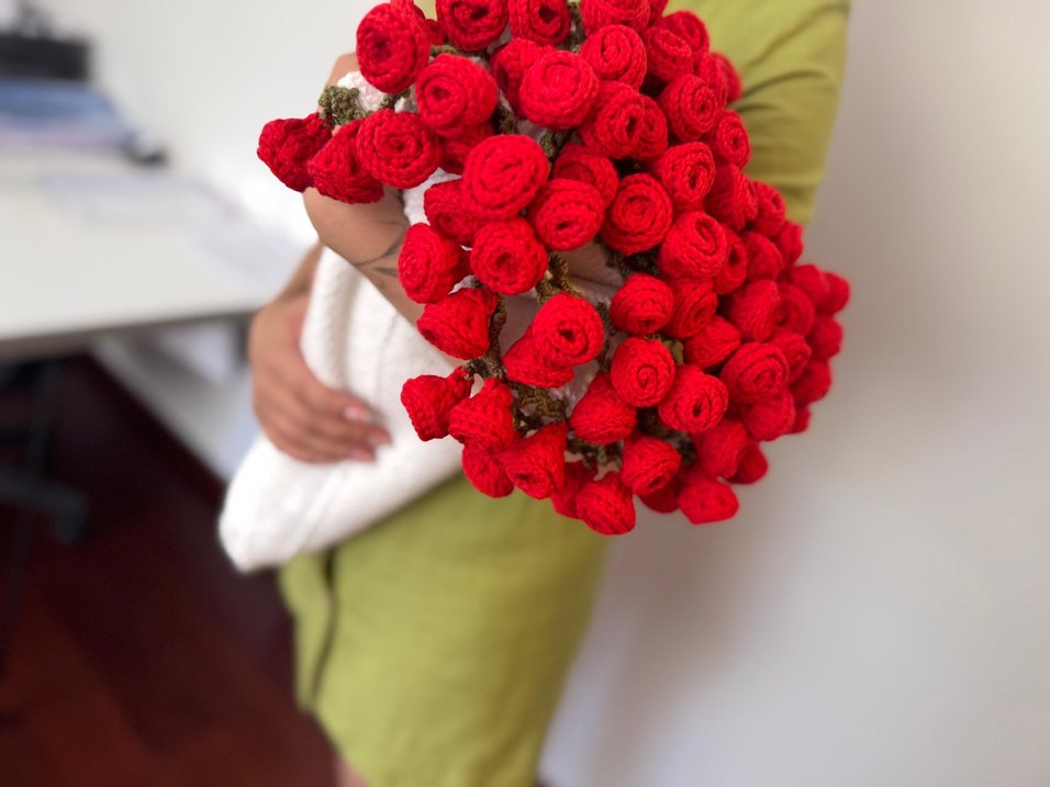 Kadınlar için örgü kırmızı çiçek desenli, renkli ve rahat bohem tarzıyla düğünler için uygun. el örgüsü