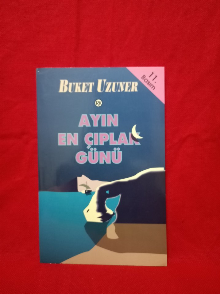 Buket Uzuner'in "Ayin En Çıplak Günü" adlı romanı, soyut şekiller ve hilal ay figürüyle dikkat çeken kapağıyla derin temalar işliyor. Kitap orjinal baskı tarihi eski olduğu için bandrolsüz ve sıfır ayarında