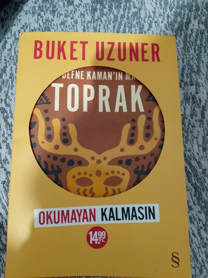Buket Uzuner'in "Toprak" kitabı, üzerinde sanatsal geyik deseni bulunan özel kapağa sahiptir.