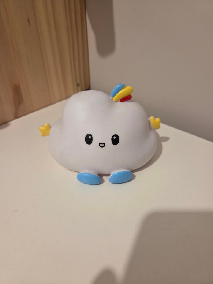 Renkli detaylara ve sevimli yüze sahip beyaz bulut şeklinde gece lambası☁️pille çalışıyor , hiçbir arızası yok.
