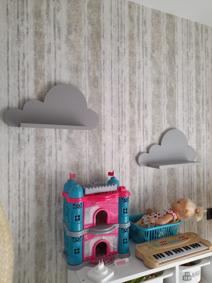 Gri renkte bulut şeklinde çocuk rafı, küçük oyuncakları veya dekorları düzenlemek için uygundur. ️Mdf kaliteli sağlam bir şey! arkasinda çiviyi takarkan oluşan cizikler mevcut kullanıma yada görsel açıdan sorun yaratmaz 2 fiyat