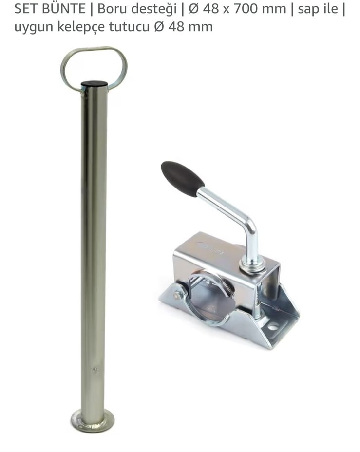 Set İçeriği: *Destek borusu *Şasiye montaj için mandallı kelepçe tutucu Bu ürün, karavan, römork ve treylerlerde park halinde denge sağlamak amacıyla kullanılan destek ayağıdır. Park sırasında sallanmayı önler, şasiye ve çeki demirine binen yükü azaltır. Mandallı kilit sistemi sayesinde pratik ve güvenli kullanım sunar. Destek borusu yere basarak karavanın veya römorkun dengede kalmasını sağlar. -Kullanım Amaçları ✔ Park halindeyken karavan/römorkun sallanmasını önler ✔ Çeki demirine binen yükü azaltır ✔ Uzun süreli parkta şasiyi rahatlatır ✔ Karavan içinde hareket ederken denge sağlar ✔ Yükleme–boşaltma sırasında güvenlik sağlar -Kullanım Alanları Karavan Römork Treyler Tarım römorkları Mobil platformlar Geçici sabitleme gereken metal konstrüksiyonlar -Ek Bilgiler Ürünler sıfırdır, kullanılmamıştır. Montajı kolaydır Galvanizli çelik Dayanıklı metal yapı. 48mm x 700mm ebatlar. #ürün yaklaşık 3 kg ağırlığındadır. Diğer tüm özellikler son resimde mevcuttur. Stok :2