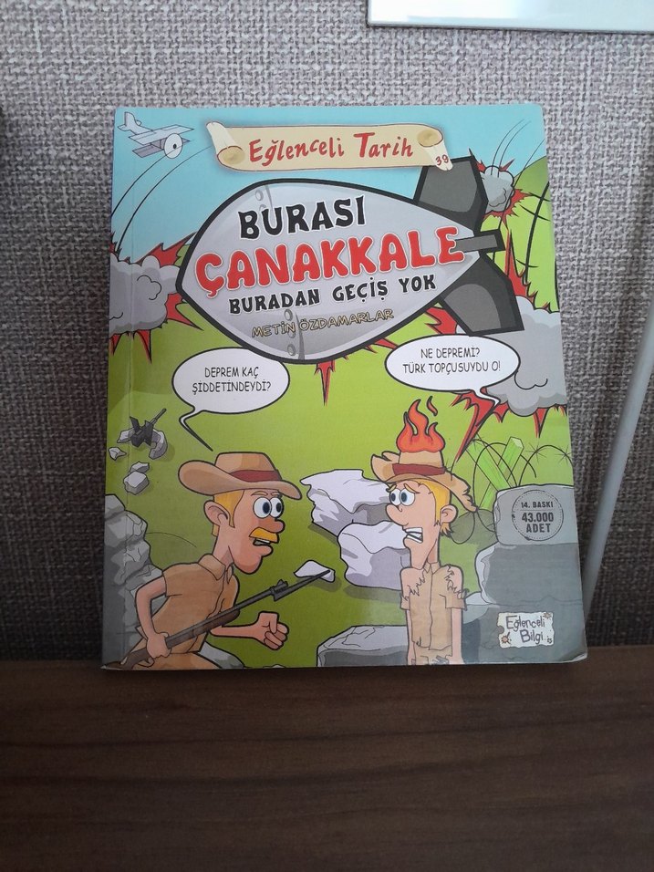 Eğlenceli Tarih serisinden 'Burası Çanakkale' çocuk kitabı, renkli çizimler ve eğlenceli diyaloglarla tarih öğrenmeyi sağlar.