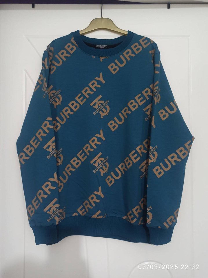 Mavi Burberry sweatshirt, uzun kollu ve bisiklet yaka, gevşek kesim, yumuşak örme kumaştan, baskılı desene sahip, günlük kullanıma uygun. sıfır ürün etiketli ihtiyaç fazlası satılıktır aynı gün kargoya verilir makul tekliflere acigim her bedeni mevcuttur