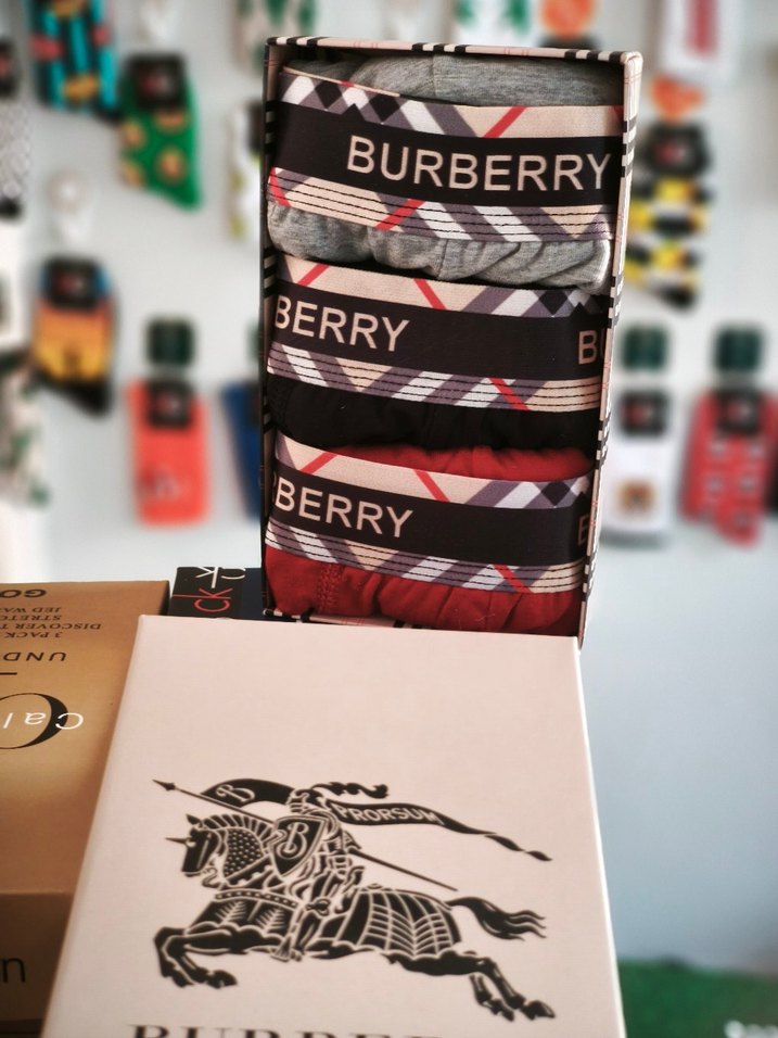 Bordo ve farklı renklerde Burberry marka baskılı boxer seti, bel bandında logolu tasarım içerir. L - XL - XXL bedenleri mevcuttur. %95 pamuk %5 likra