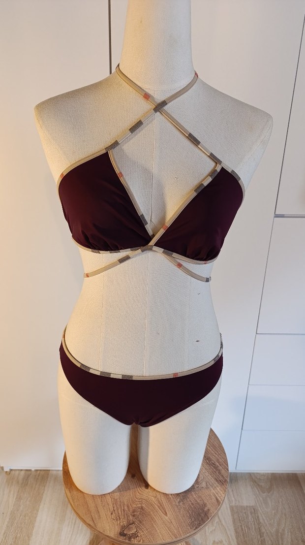 Burberry Brit Bikini – M Beden İtalya’daki Burberry mağazasından alınmış, orijinal parçadır. Zarif bordo tonlarında, çapraz bağlamalı ve şık detaylı tasarım. Hem sade hem iddialı görünüm sevenler için mükemmel. Temiz, az kullanılmış durumda. Destek süngeri yok. #burberry #burberrybikini #luxuryfashion #bikinistyle #italiandesign #markabikini #plajmodası #birdotonları #burberrybrit