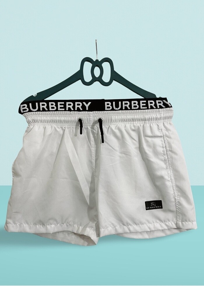 Marka ürün. Boxer model beyaz sade ön logo detaylı burberry deniz şortu