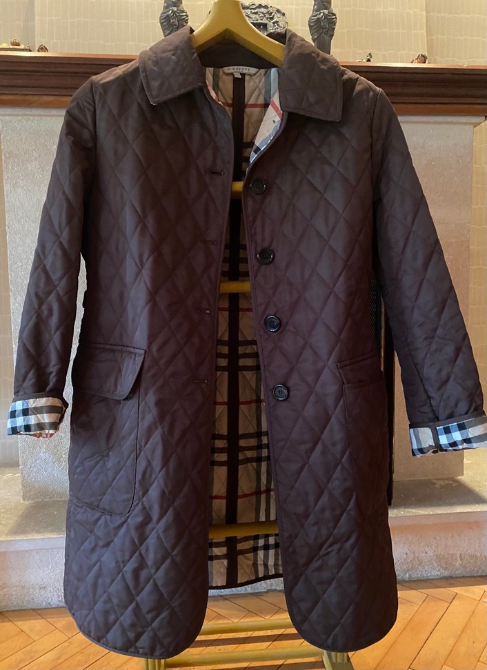 Orijinal Burberry kahverengi, düğmeli kadın paltosu, içi Burberry ekosesi desenlidir. Kapitone dokuma kumaştan üretilmiştir. Çok az giyilmiştir, neredeyse yeni durumdadır. Hiçbir defosu yoktur. #Burberry #London #kahverengi #mont #palto #kapitone #ekose #kadın
