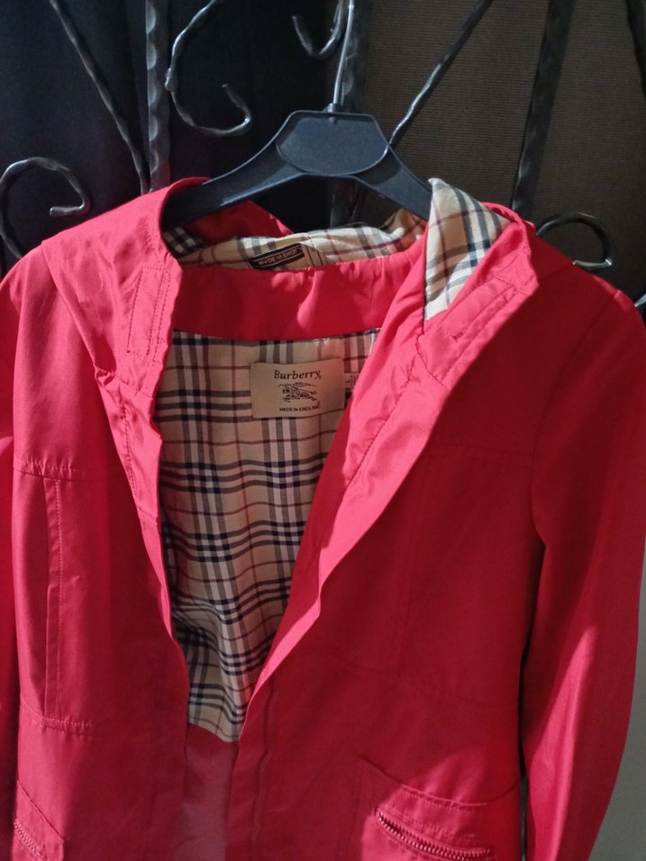 Burberry Kırmızı Kapşonlu Kadın Yağmurluk