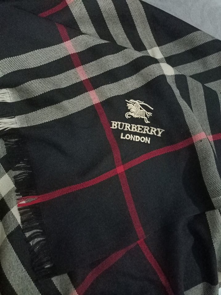 Burberry marka, bordo ve siyah tonlarında kare desenli, İşlemeli Burberry London logosu ve rahat dokusuyla şık ve sıcak bir seçenek.