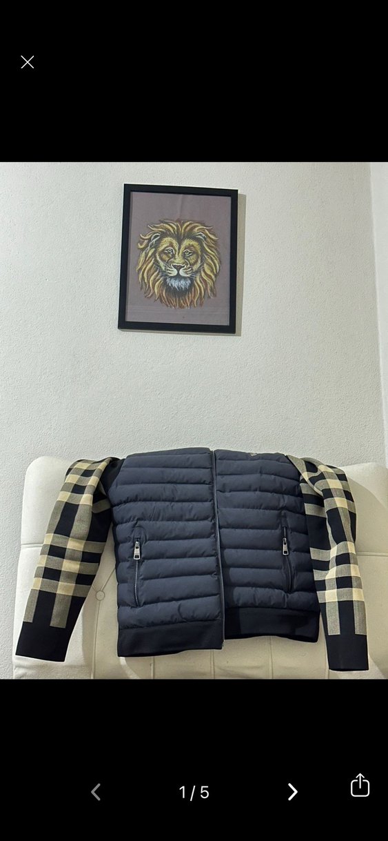 Fitted kesim, koyu mavi kapitone gövde ve kareli askılı kollara sahip, kemerli, boğazlı erkek mont. Rahat sokak stili için uygundur. Burberrt orjinal ürün.