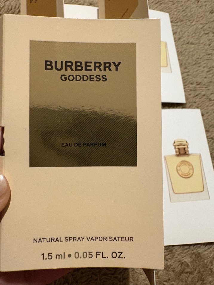 Burberry Goddess kadın parfümü, 1.5 ml doğal sprey eau de parfum örneğidir. Zarif bir koku deneyimi sunar.