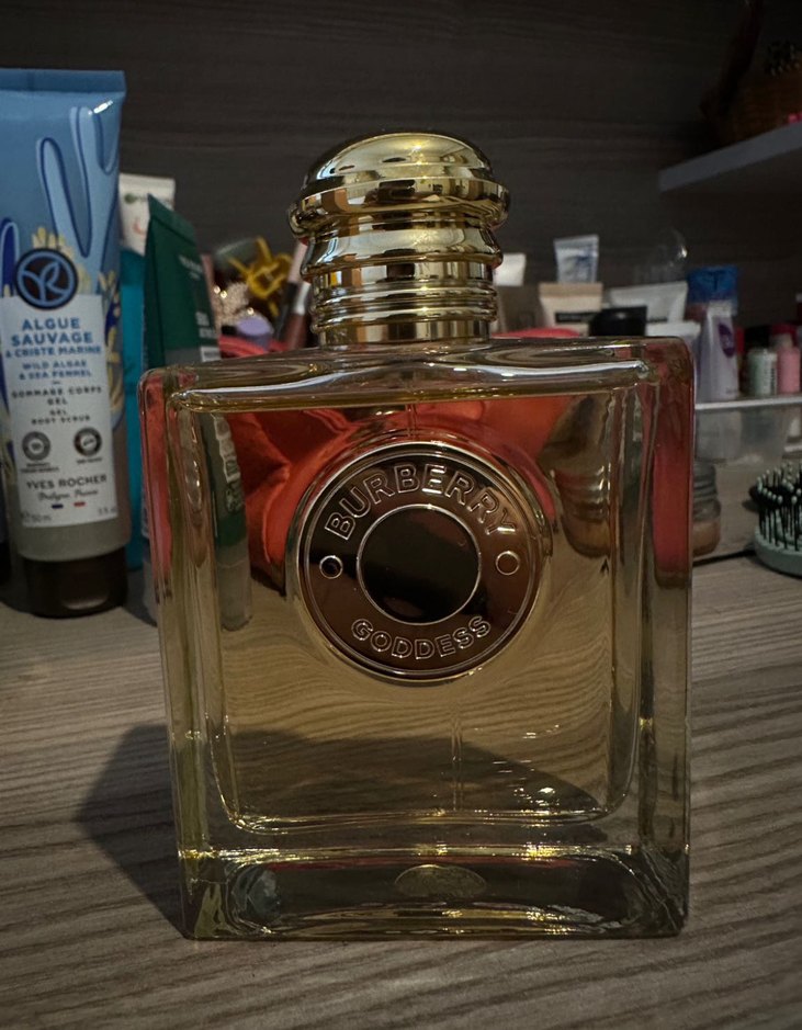 Burberry Goddess kadın parfümü, altın kapaklı şık cam şişede klasik tasarıma sahiptir. Zarif bir koku sunar. Yanlış seri aldığım için maalesef kullanamadım o yüzden satışta bir kaç kez kokusunu bakılmak üzere sıkıldı