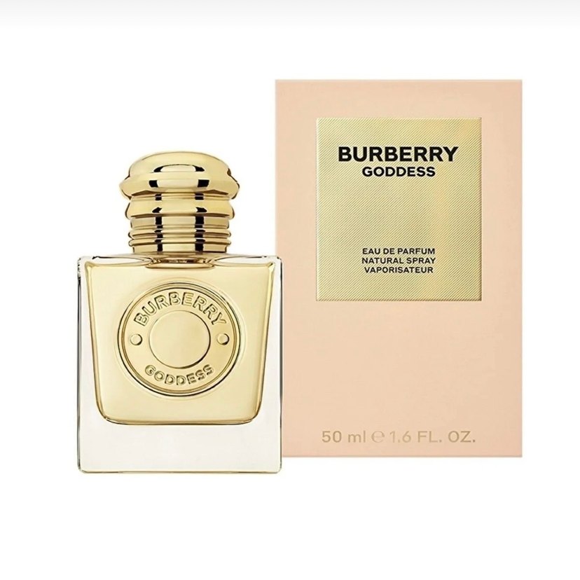 Burberry Goddess kadın parfümü, 50 ml doğal sprey şişede zarif bir koku sunar. Altın renk kapak ve kabartmalı logo detayları bulunur.