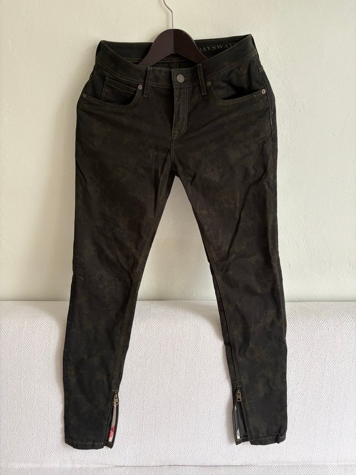Burberry Jean Pantolon Siyah uzerinde, haki renkte asker desenini animsatan hafif bir deseni var. Orijinaldir. #burberry #jean #pantolon