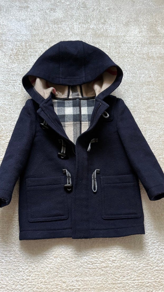 Burberry Lacivert Kapüşonlu Erkek Çocuk Kaban