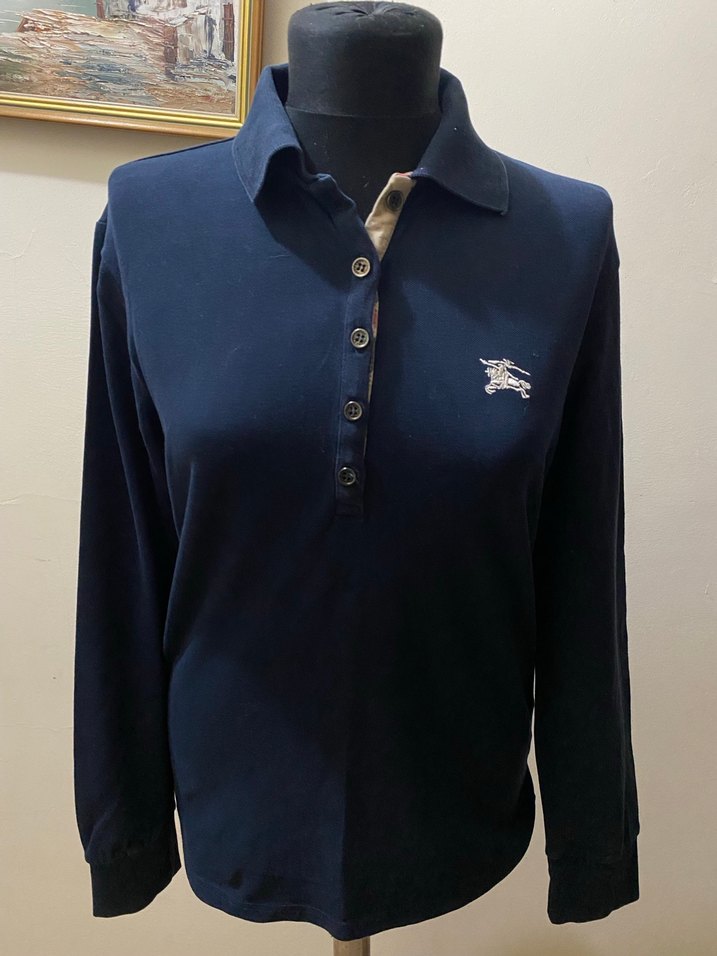 Burberry Polo iki koltuk 49 boy 62 cm Uzun kollu, lacivert renkli, düğmeli ve yakalı kadın gömleği, yumuşak ve sıcak kumaştan üretilmiştir. Baskılı logo detayı ve normal kesimi ile ofis için uygundur.