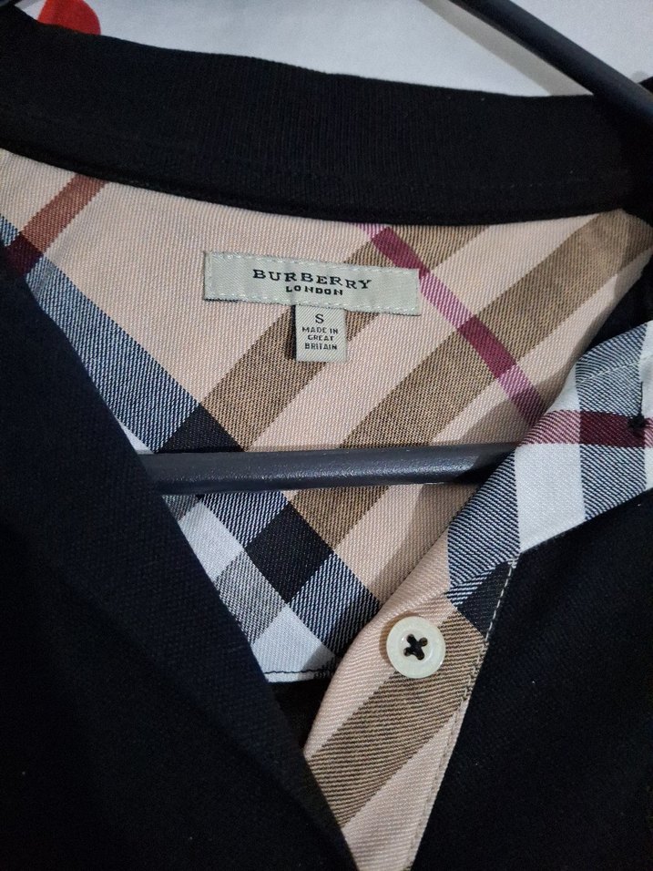 Burberry markalı, düğmeli, uzun kollu ve yakalı kadın gömleği. Pamuktan üretilmiş, regular kesim ve baskılı desene sahip, siyah renkte.