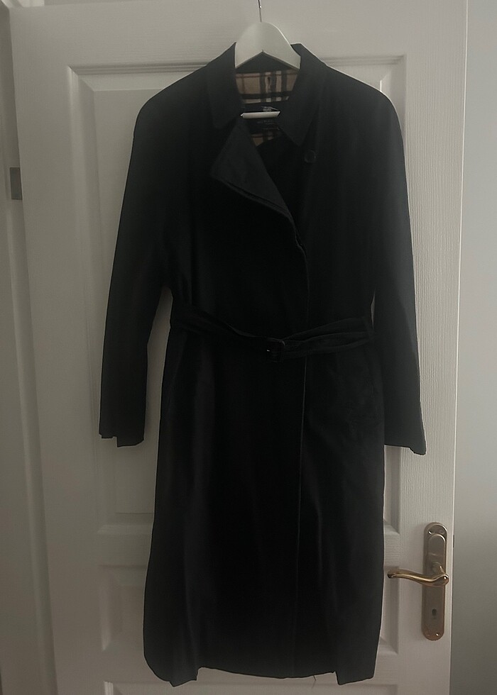 Burberry su geçirmeyen trençkot, içinde yün yeleği ile.
