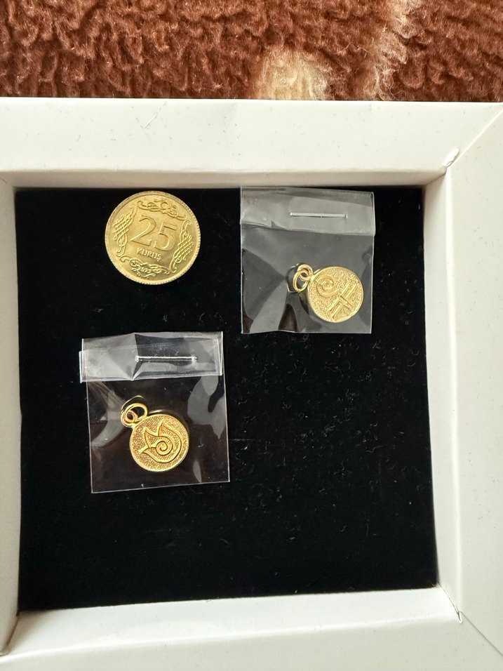 Gümüştür, altın kaplama parlamaktadır. Alan güzel günlerde kullansın hiç kullanılmadı. Toprak ve ateş