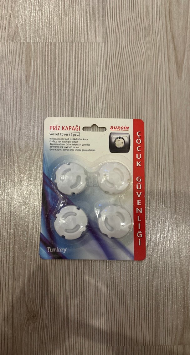 Burçin marka beyaz priz kapakları, çocukların elektrik prizlerine erişimini engellemek için 4 adet olarak sunulmaktadır. Çocuk güvenliği sağlar. ⚡