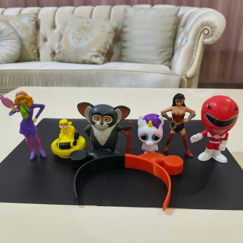 Wonder Woman: Burger King Justice League Action serisi figürü (Kolları hareketli). Harley Quinn Taç:(nadir cok az çıkar) Burger King serisinden, iki renkli (siyah-turuncu) eğlenceli kafa aksesuarı. son resme hangi sete ait oldugunu yazdim ic ve dışında rahatsız etmeyen hafif beyazlik mevcut. Maurice (Madagaskar): Lemur figürü, elinde asasıyla birlikte. Daphne (Scooby-Doo): Elinde aynasıyla ikonik mor kıyafetli figür. Kırmızı Power Ranger: Büyük kafalı (bobble-head tarzı) figür. Rubble (Paw Patrol): Sarı iş makinesi üzerindeki karakter. Unicorn Figürü: Mor saçlı, şirin küçük figür.