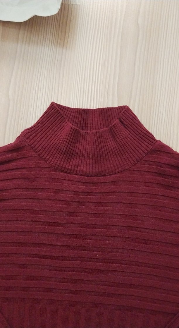 Beyaz manşet detaylı, boğazlı ve uzun kollu burgundy renk triko kazak. Rahat kesimi ve fitilli dokusuyla günlük kullanıma uygun, sade ve konforlu bir parça