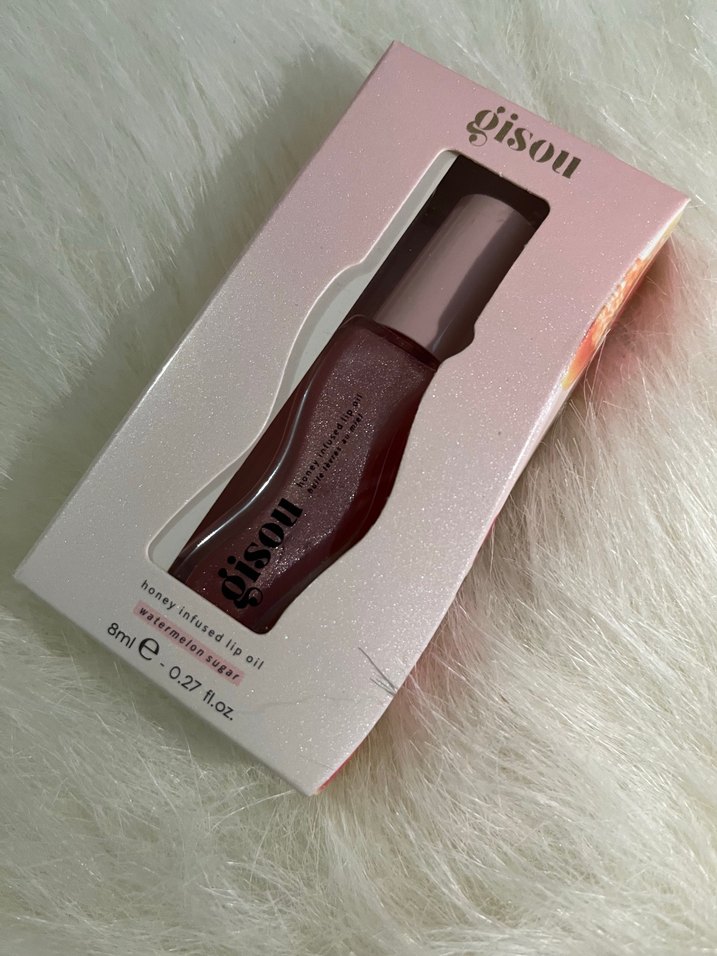 Burgundy renkli, parlak görünümlü, besleyici içerikli 8ml lip gloss. Gisou markasına ait.