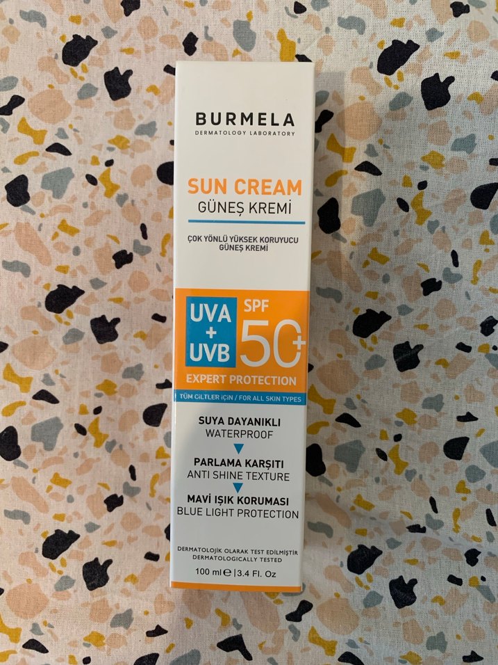 Burmela güneş kremi SPF 50+ koruma sağlar. Suya dayanıklı, parlama karşıtı dokusu ve mavi ışık koruması ile tüm cilt tiplerine uygundur.