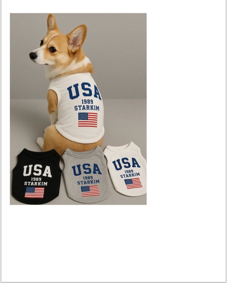 BurningO's USA Köpek Tişörtü, Gri, Siyah, Beyaz, 1 Adet