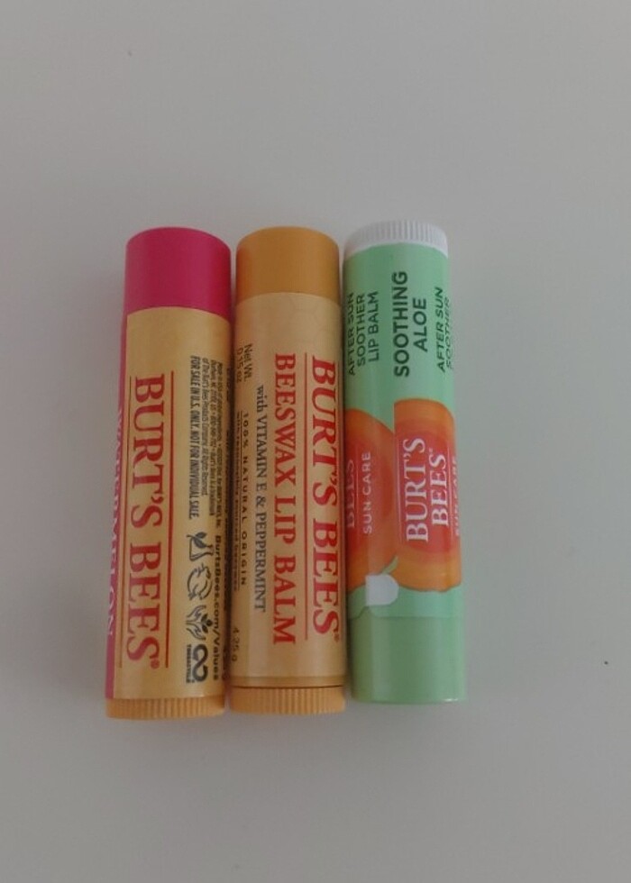 Burt's Bees dudak nemlendiricisi , fotoğraftaki 3 ürün de bulunmaktadır, istenilen ürün için yeni ilan acılir , adet fiyatidir