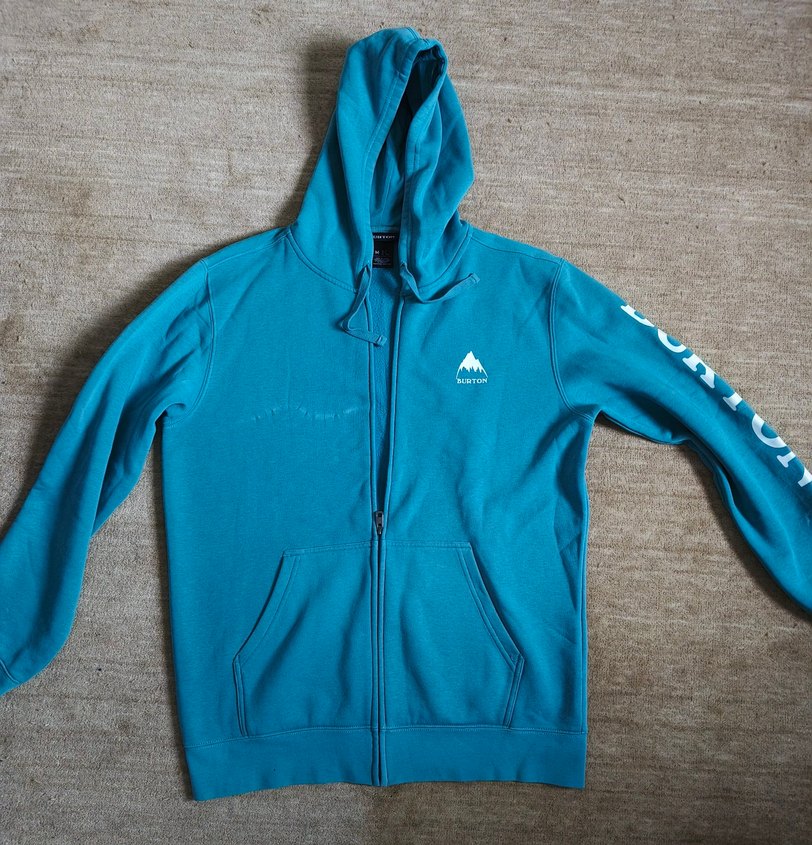 Uzun kollu, kapüşonlu ve fermuarlı bu erkek mavi sweatshirt, dış mekanlar için uygun, yumuşak ve sıcak kumaştan üretilmiştir. Iç malzemesi polar. mağaza satış fiyatı ortalama 5-6 bin TL. sağ göğüs kısmında sürtünmeden kaynaklı küçük bir alanda deformasyon oluşmuştur.