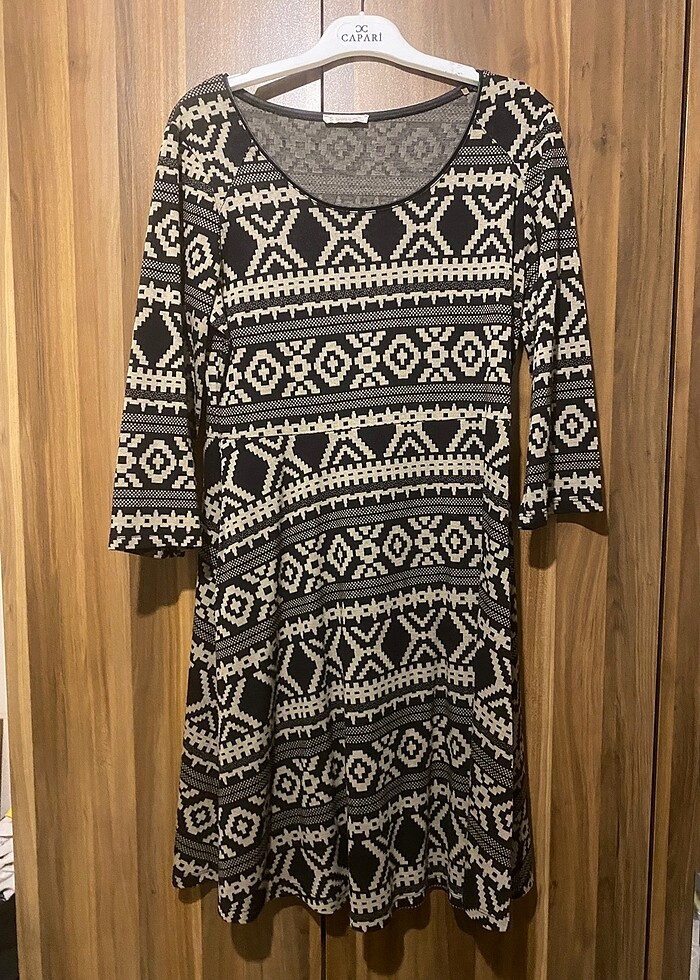 Busem marka Etnik desenli çan elbise yaka kısmı deri xl beden