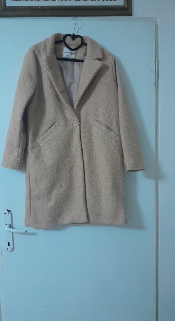 midi uzunlukta, düğmeli, yakalı kadın kabanı. Uzun kollu ve rahat kesim, yumuşak ve sıcak kumaştan üretilmiştir.